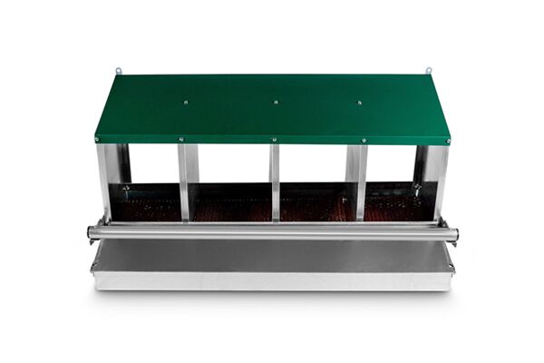 Nest made entirely of galvanized sheet metal with an exclusive design that allows the nest tank to be placed outside or inside the hen house, this gives us incredible versatility without spending more on accessories or additional parts. The base of the tank also has perforations to screen the dust from the eggs, and this can also be disassembled to facilitate cleaning the nest.